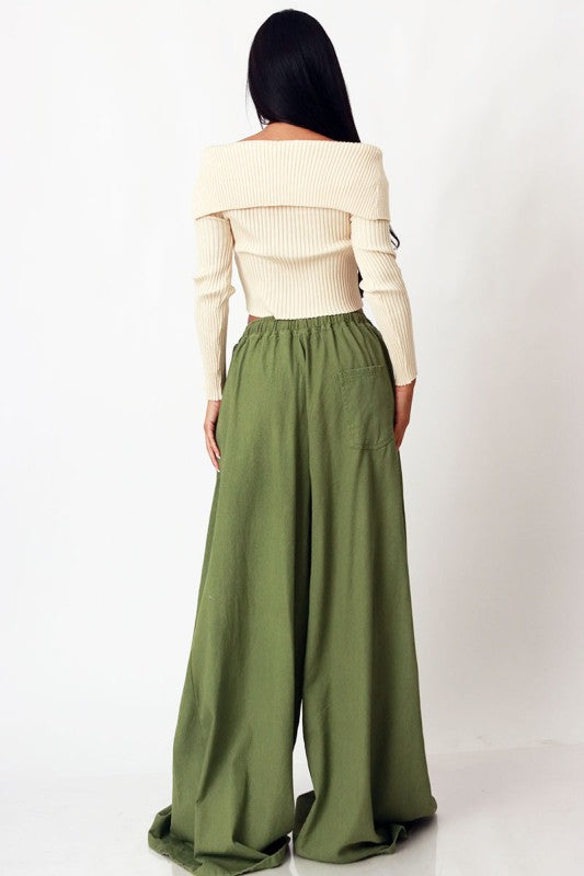 Denim wide leg pants with drawstring waist. Pants are oversized
