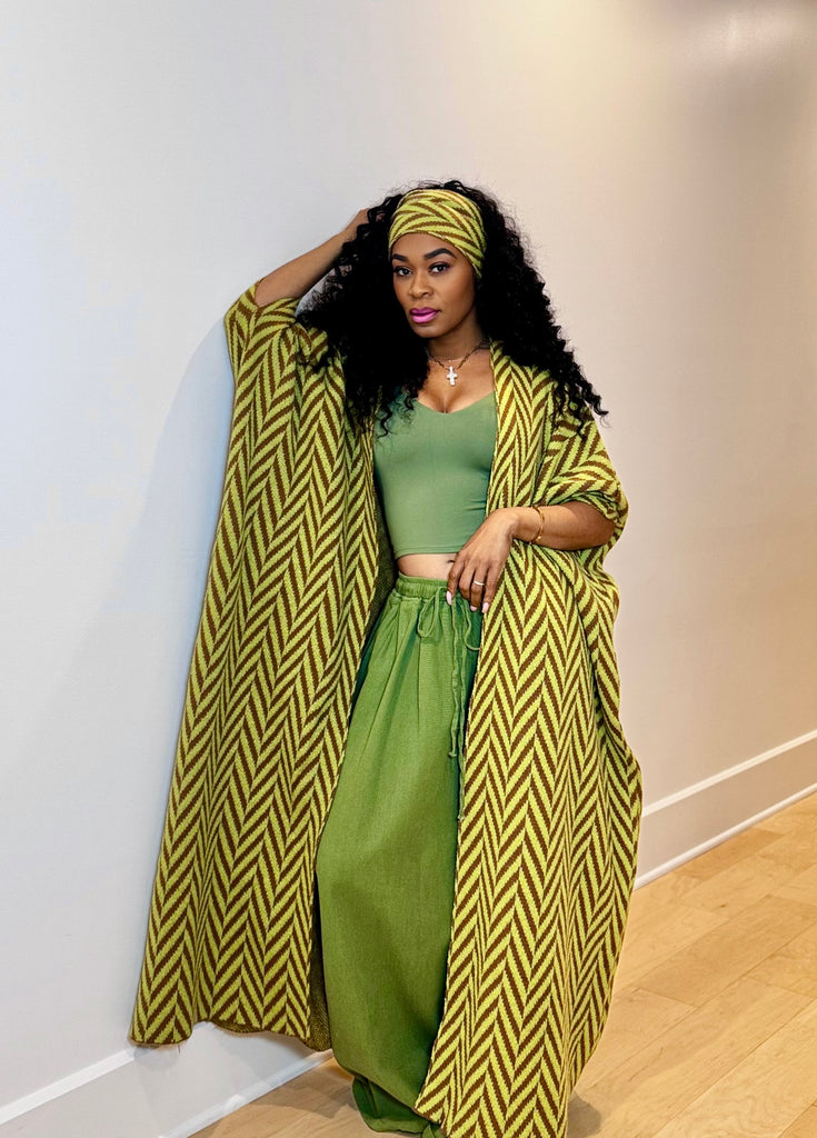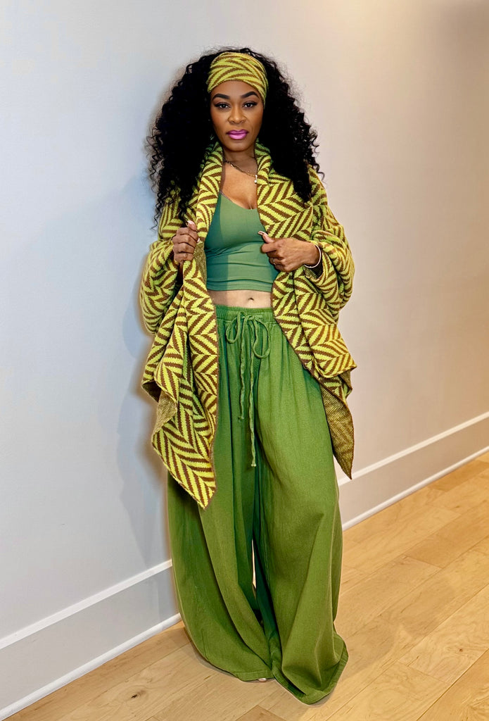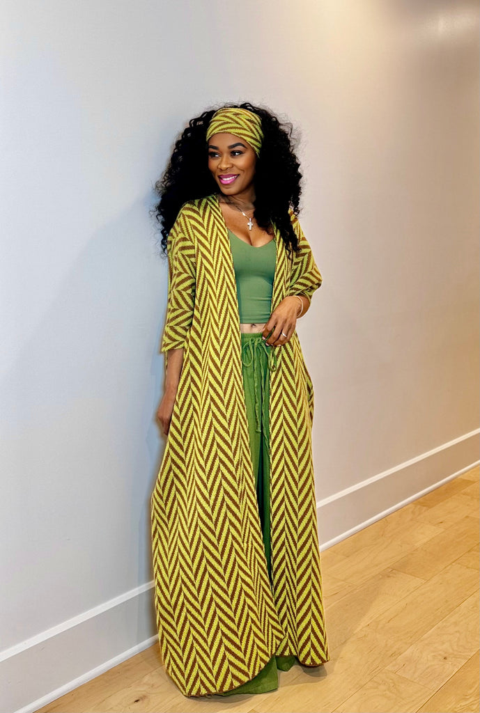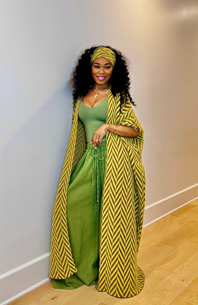 Maxi sweater cardigan and headband. One size fits up to 2X