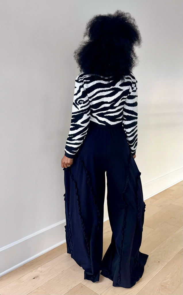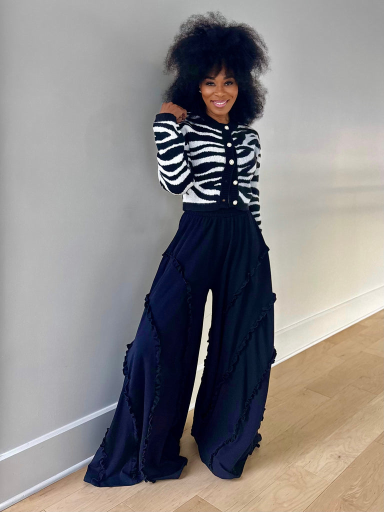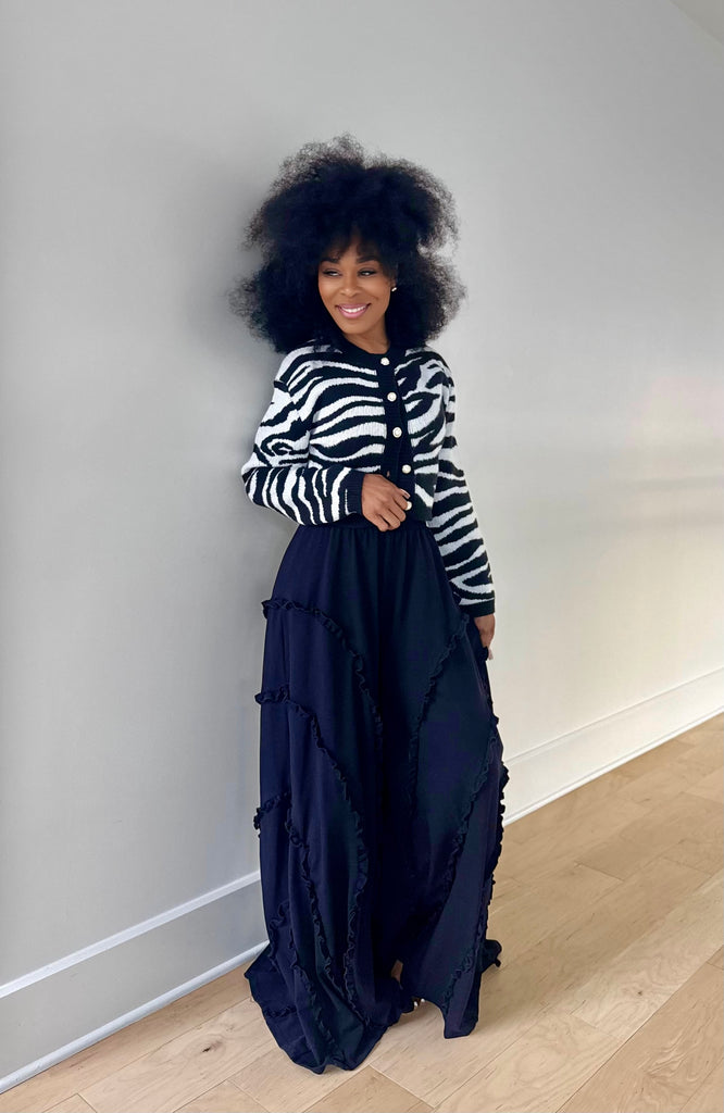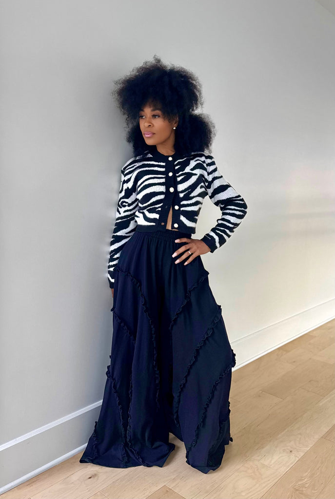 Zebra print knit crop cardigan with pearl accent buttons